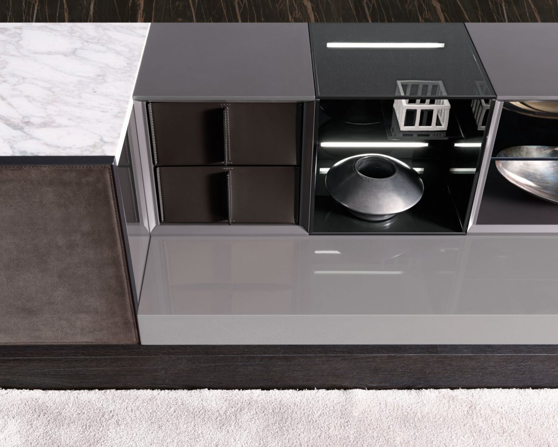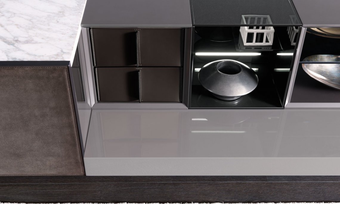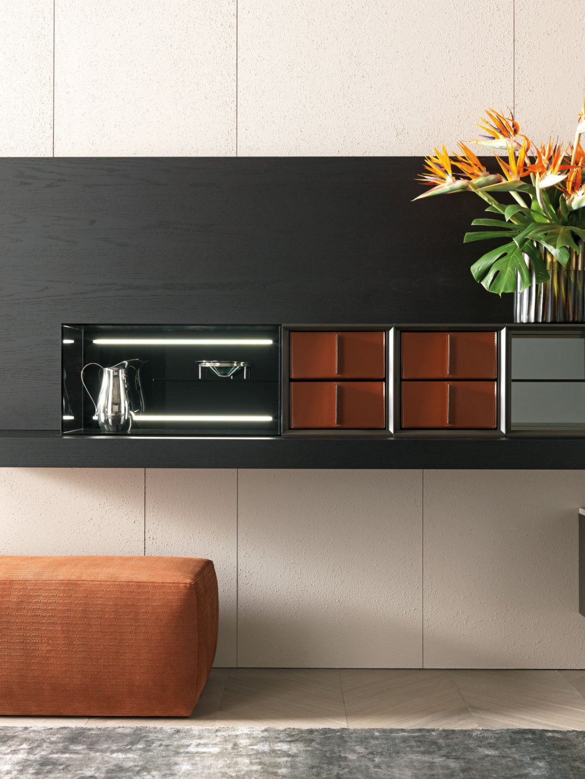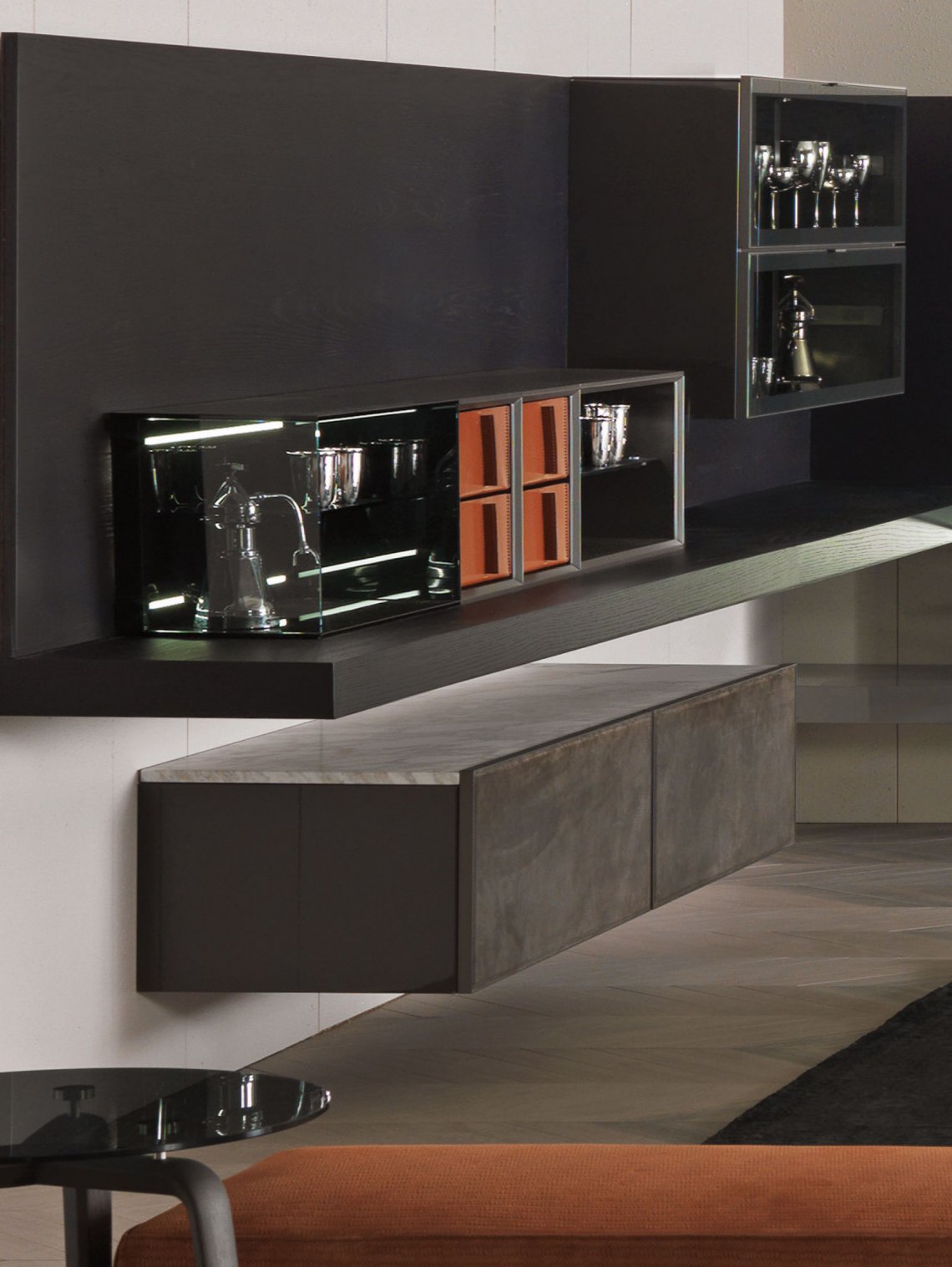 TAO墻體系統(tǒng),由錯(cuò)落別致的層架和多種柜體模塊組合,在考量到人性化和增加實(shí)用性的同時(shí),為空間增加輕盈感。