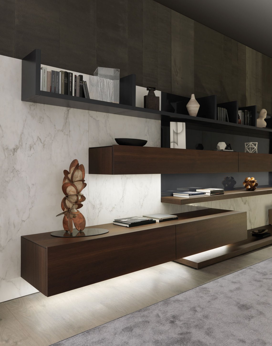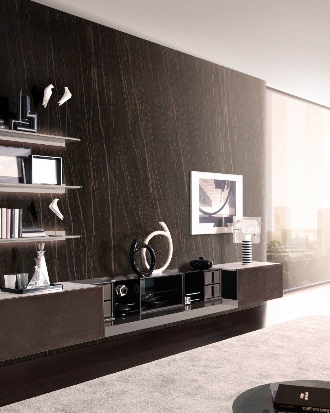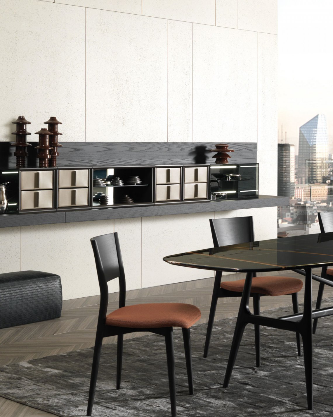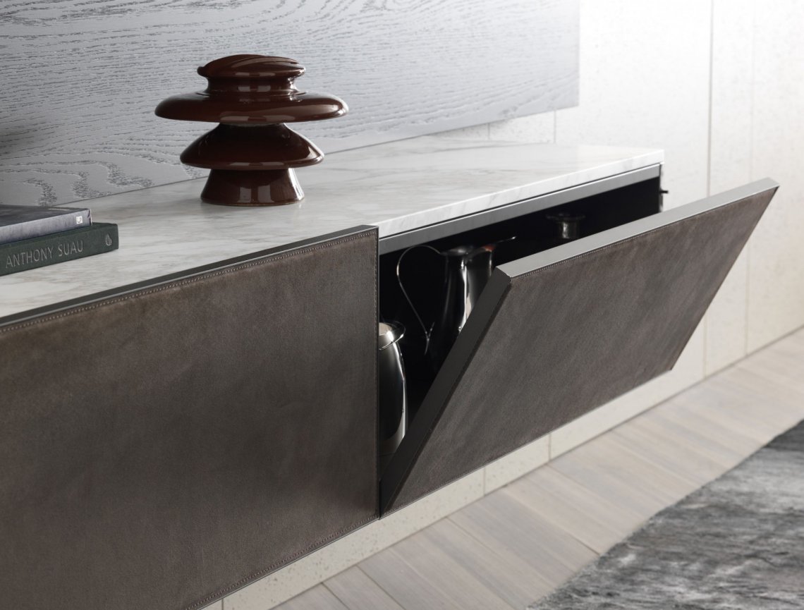 TAO墻體系統(tǒng),由錯(cuò)落別致的層架和多種柜體模塊組合,在考量到人性化和增加實(shí)用性的同時(shí),為空間增加輕盈感。