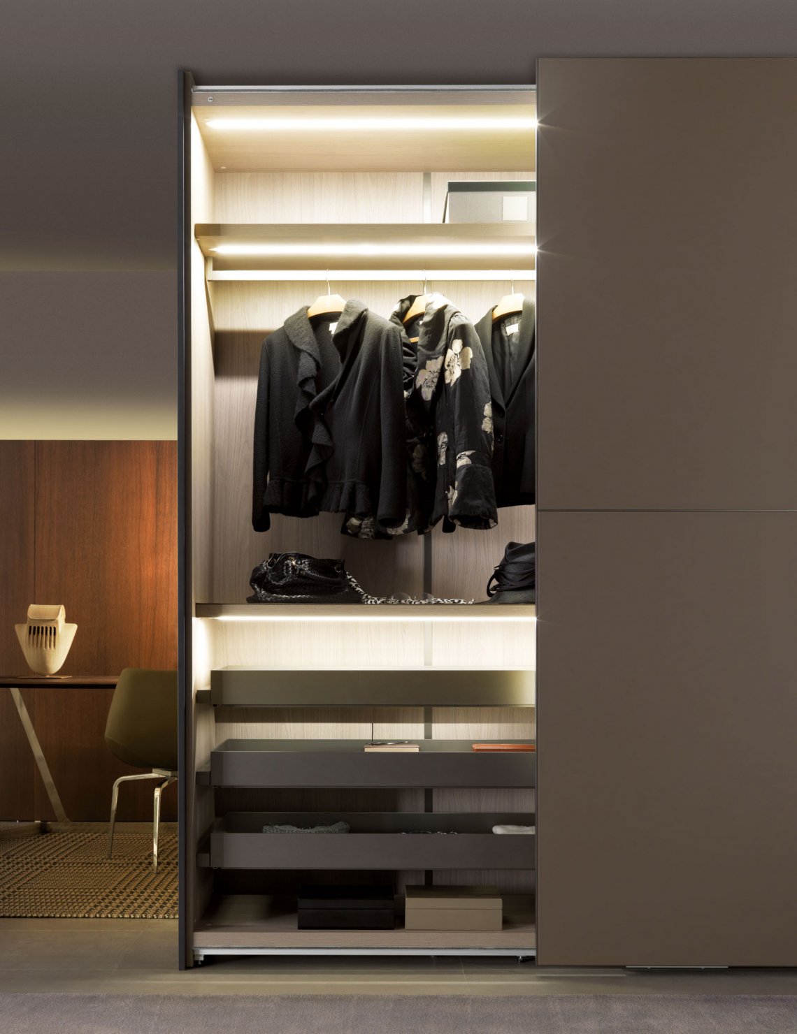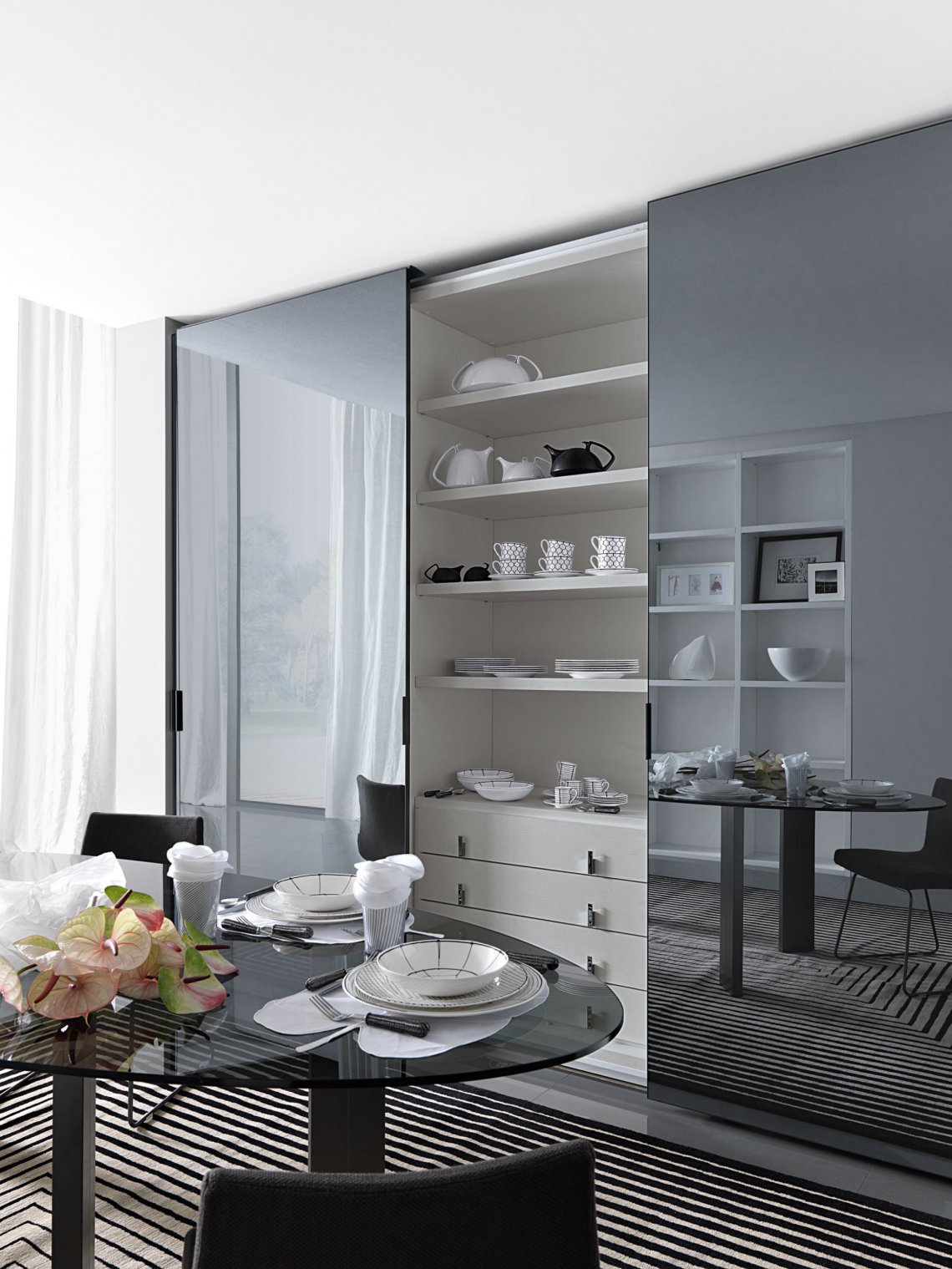 玻璃的透視感,鏡面的反射效應,淡色調系門板,完美提升了產品整體呈現的質感。
