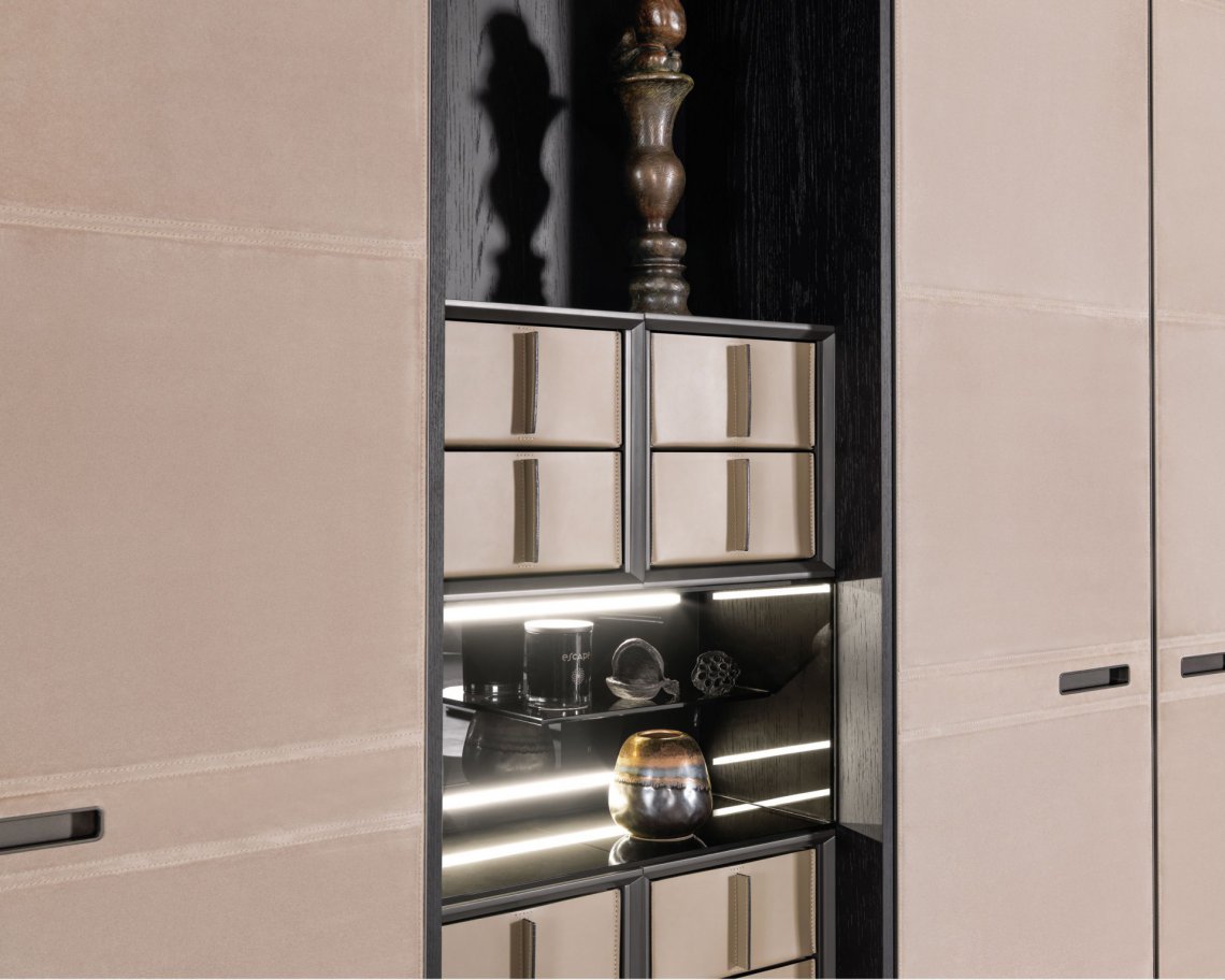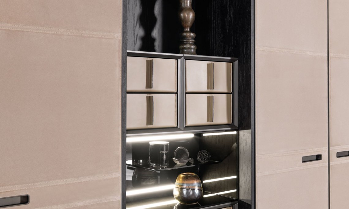現(xiàn)代與傳統(tǒng)的完美結(jié)合,營造出靈動(dòng)雅致的空間。精工的皮革走線巧妙結(jié)合內(nèi)嵌把手設(shè)計(jì),方形輪廓的布局外觀,彰顯意式時(shí)尚優(yōu)雅風(fēng)范。