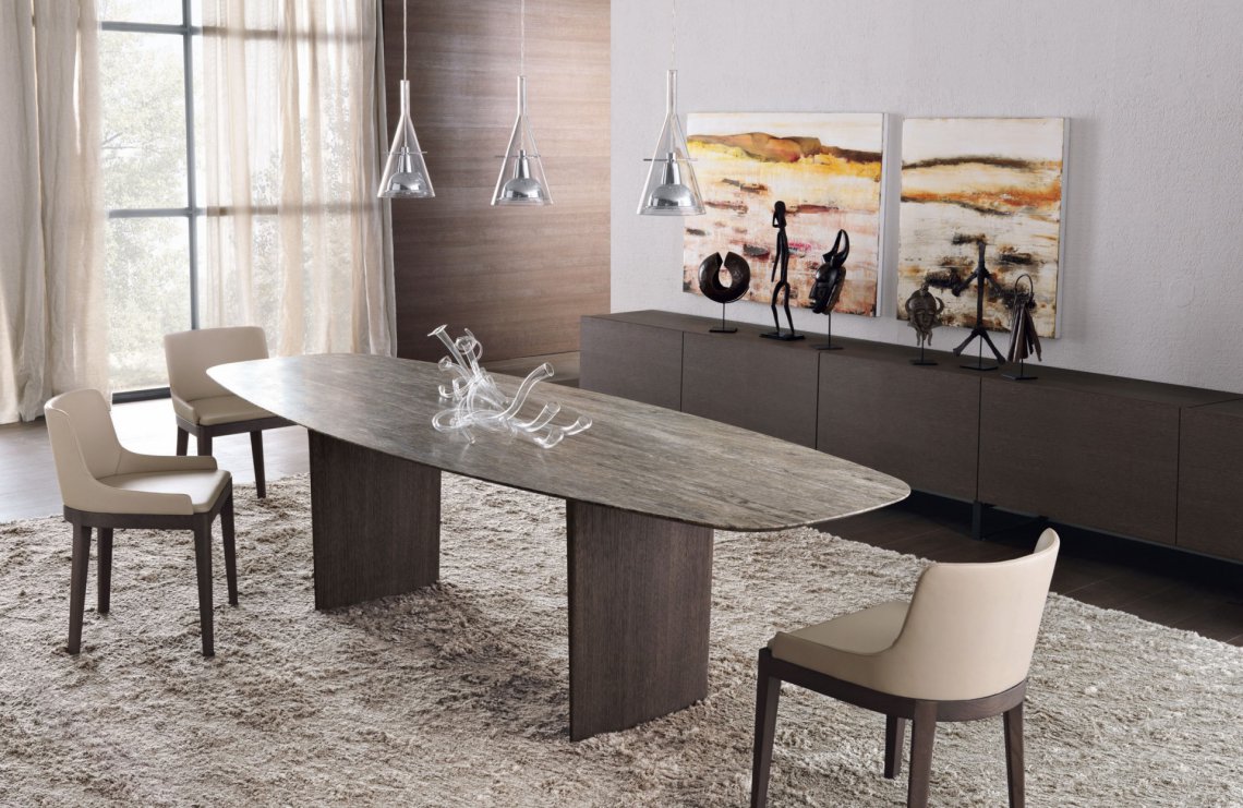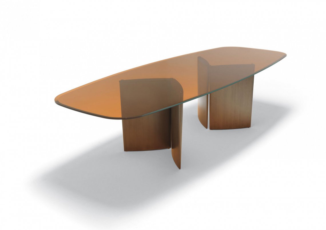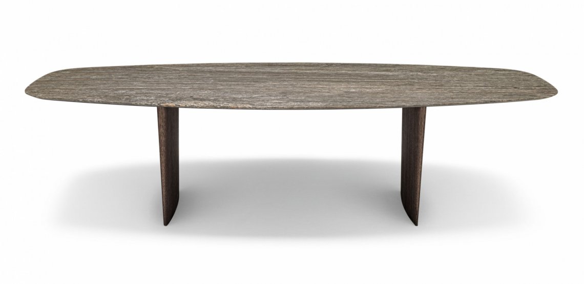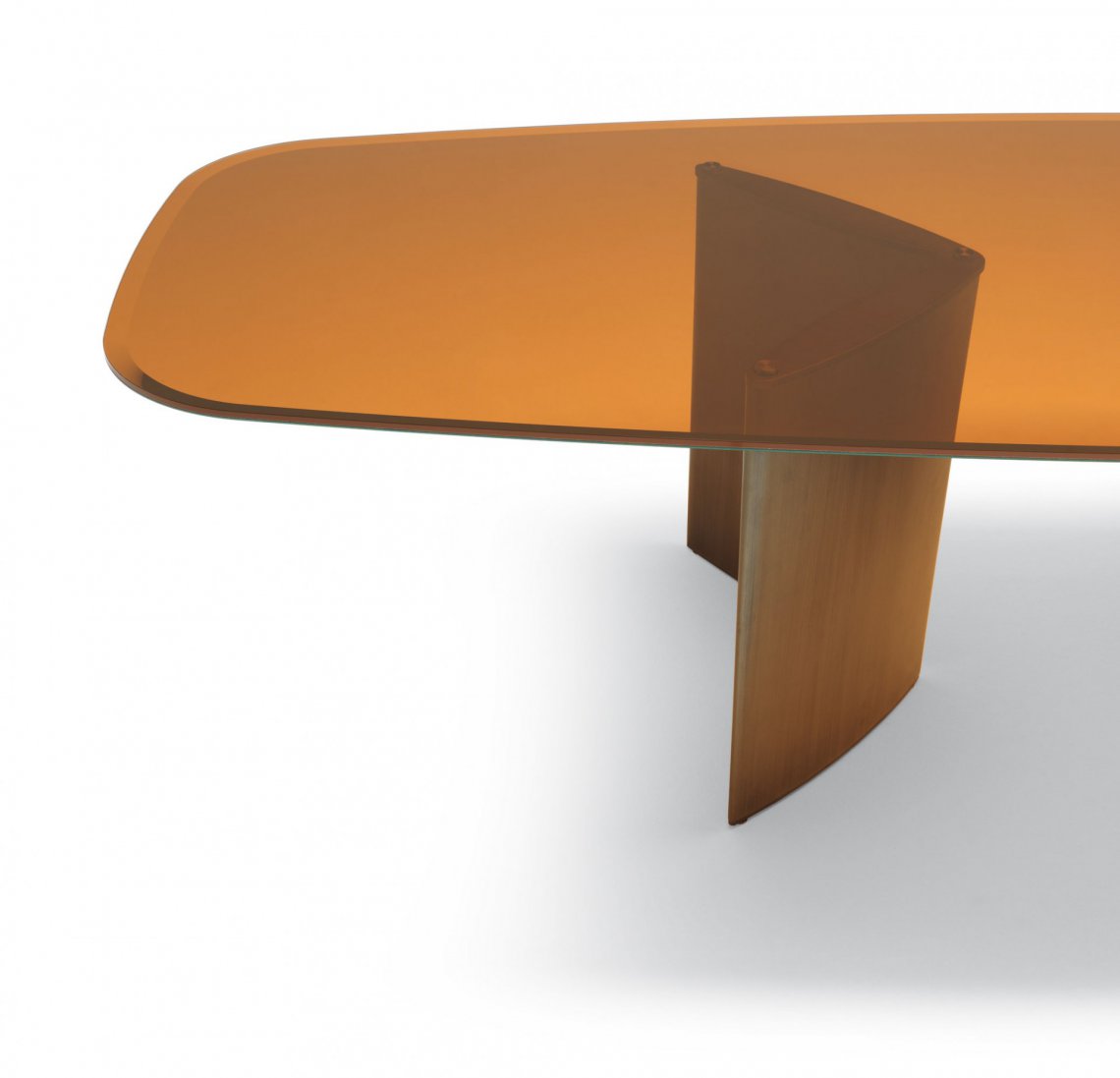 一張桌子,組合不同材料,同時也展示了一種當代科技。桌面的細薄修邊可減輕產(chǎn)品厚度的視覺感知,使其輕巧懸掛。撐腳部分讓人聯(lián)想起飛機的機翼,即是這個產(chǎn)品的靈感來源。