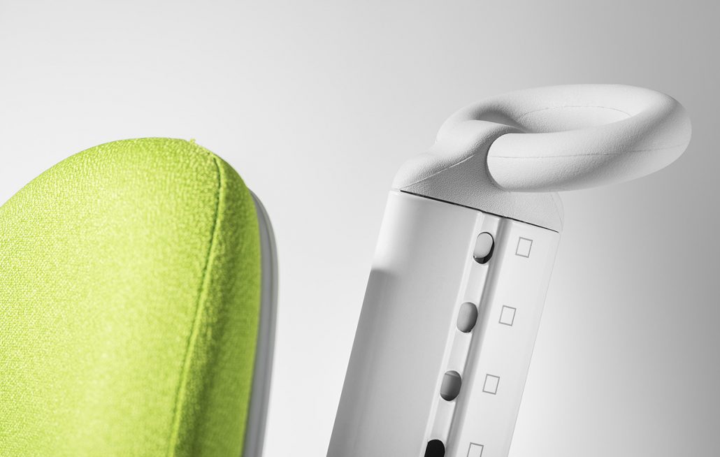 Molded cushions, a seat with shock absorbers and oscillating back rest intensify the effect and motivate to keep changing the position instead of remaining static.
