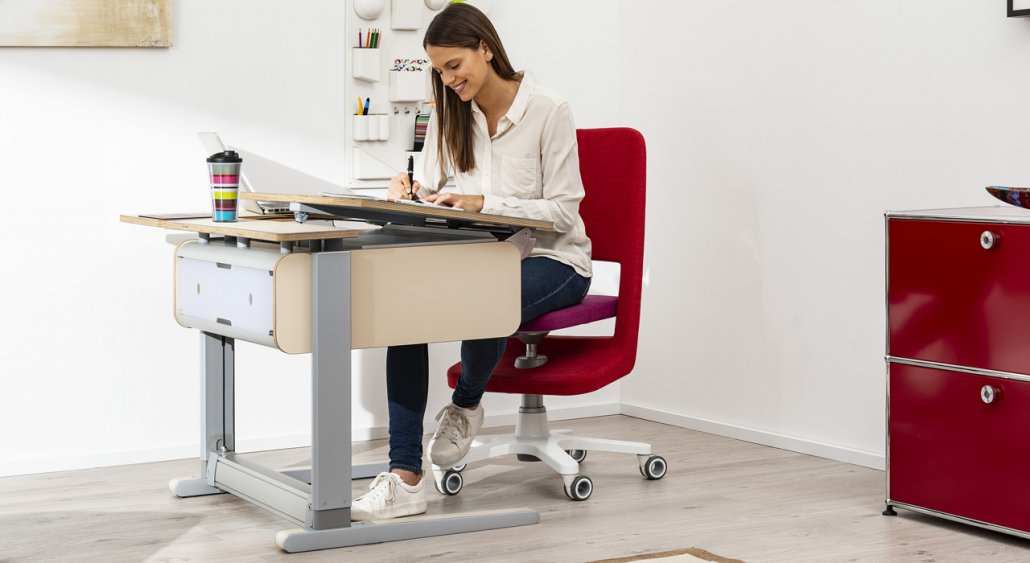 With the moll T5, the user stimulates the standing and sitting dynamics, i.e. the interruption of seated work by working periods that could be done while standing. After all, a comfortable, ergonomically designed workplace as a basis for modern, productive work is not only reserved for the professional workplace in the office.