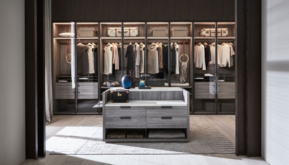 Window是創(chuàng)新設(shè)計(jì)的鋁框玻璃鉸鏈柜門(mén),錫灰色飾面,帶有側(cè)把手。創(chuàng)新的隱藏式鉸鏈安裝在柜體的底板和頂板里面,確保了極其簡(jiǎn)潔的視覺(jué)效果。
