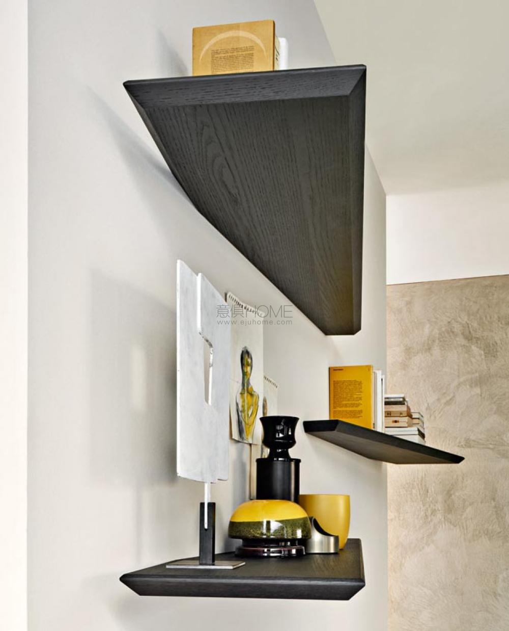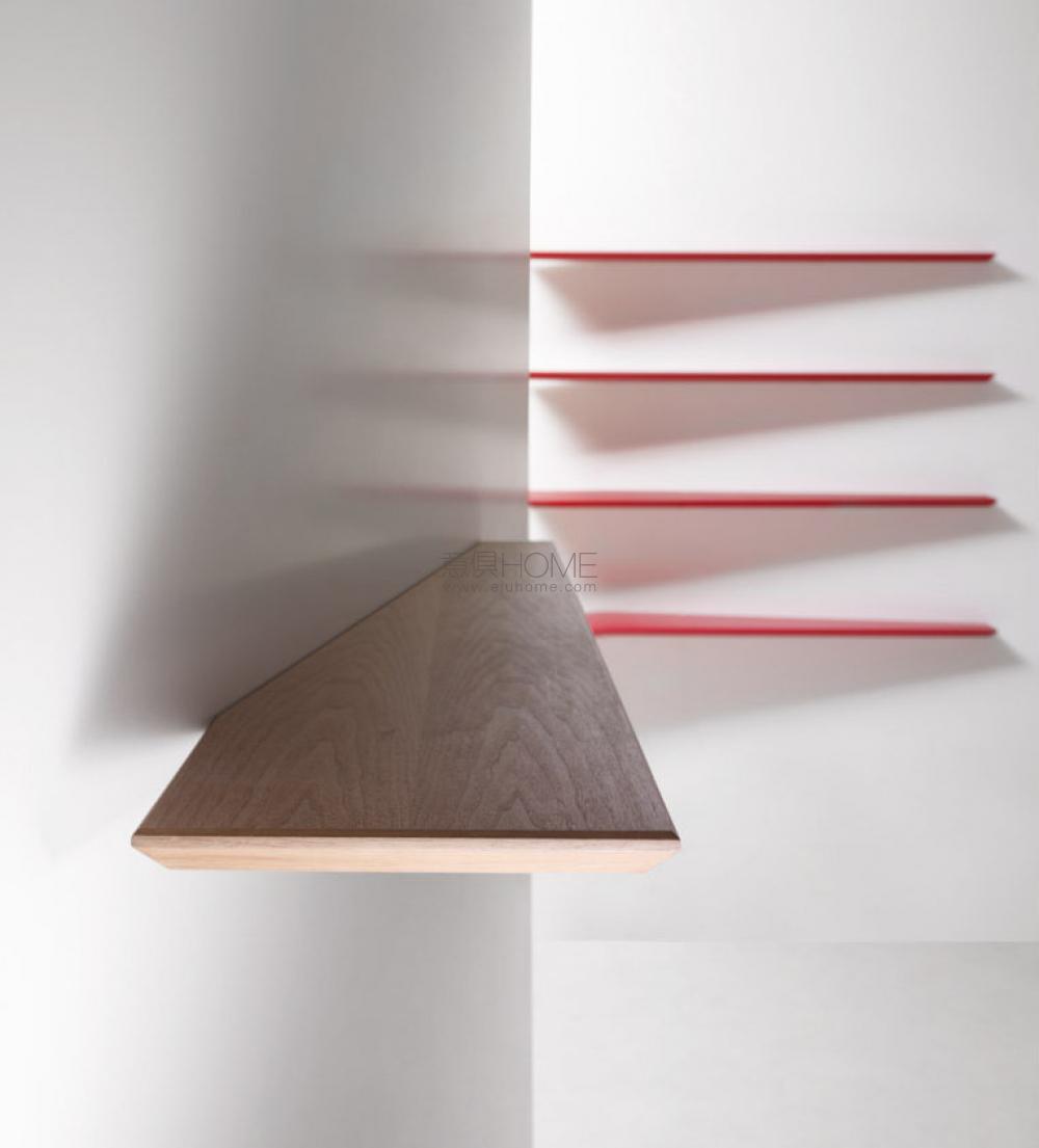 Ron Gilad創造了穿透墻壁的菱形輪廓層架,質疑我們的對墻壁的感知并將它們呈現為吸引和征服我們的物件。菱形輪廓的層架穿透墻壁,使我們懷疑自己對墻的認知。中密度纖維板用不同的木紋貼皮,隱藏式鍍鋅金屬支撐桿。可選烤漆顏色。這是Ron Gilad Grado°系列的一部分。