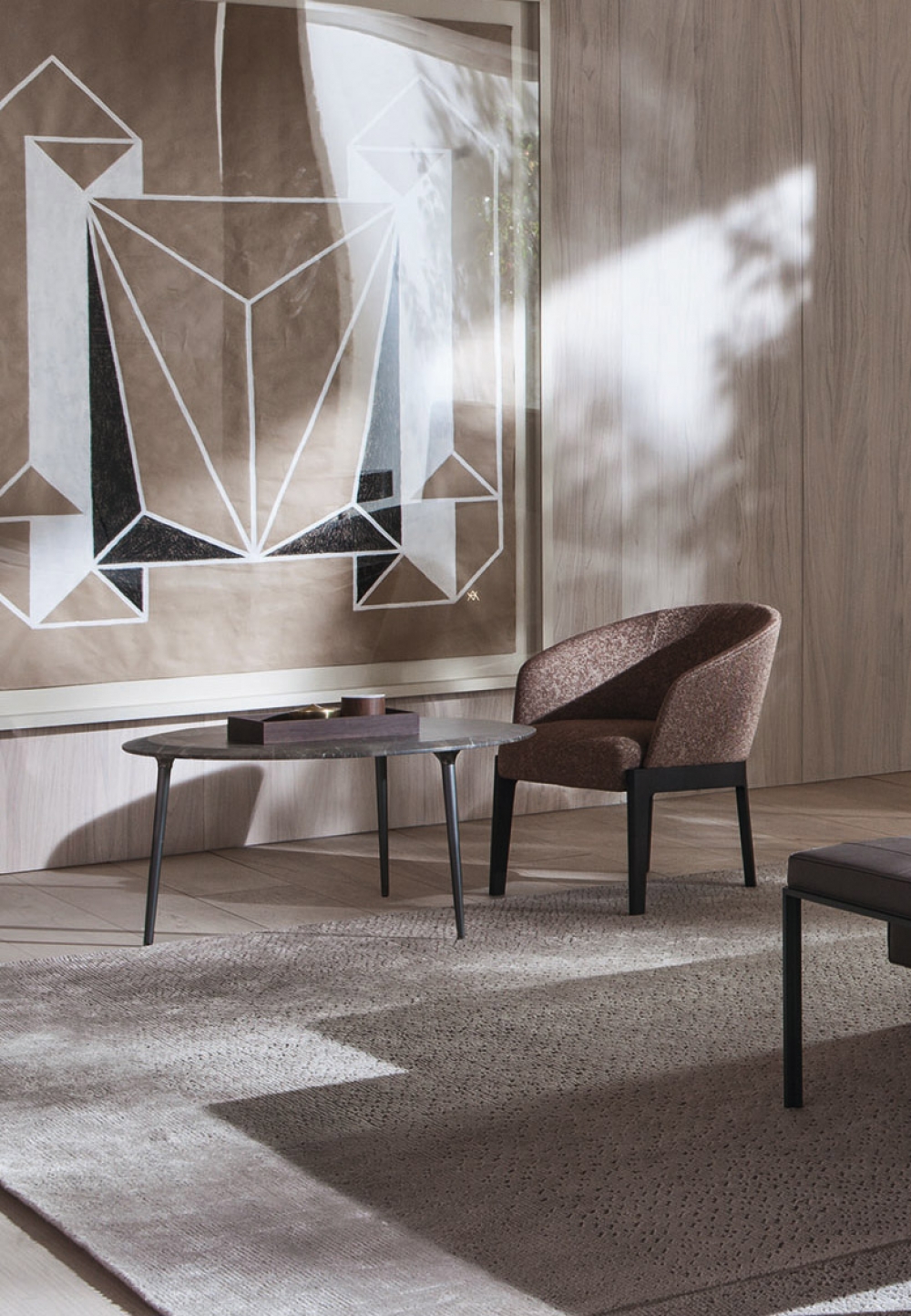 原始系列圓桌和梯形桌。此類桌子產品始終配備有三條錫鉛合金飾面,兩種高度的金屬 桌腿?;?面邊緣的桌面在本質上為桉樹或石墨橡木,采用了白煤、黏土和赤褐色亮面涂 漆。個別版本還將 采用灰色東方大理石或黑色馬奎納大理石材質。