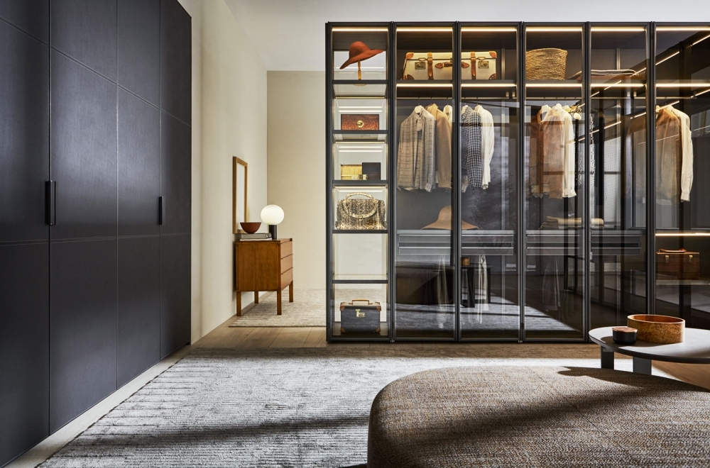 GLASS doors are made with 180° hinges built into the side (a Molteni exclusive)