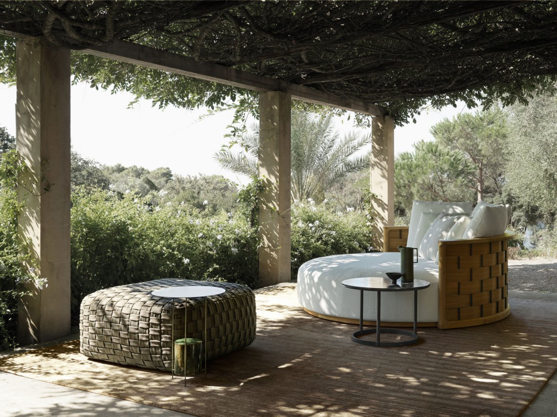 The Palinfrasca Sofa, with its immediately recognisable iconic shape, pays tribute to the 1994 work by Luca Meda from which it takes its inspiration, interpreting the essence of teak not only in an unprecedented and contemporary way, but also in the most exhaustive representation of Molteni&C's savoir-faire and research into materials: a knowledge gained in the almost ninety years of the life of the company, founded in 1934.