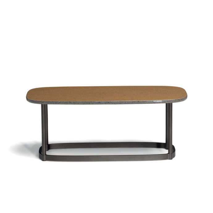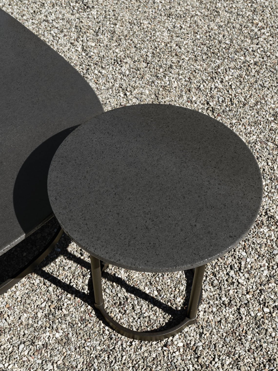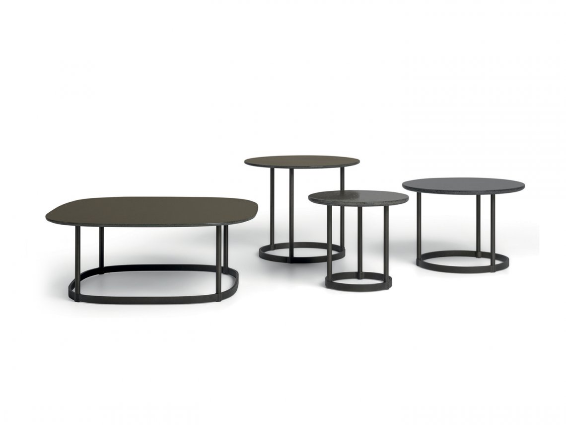 Vincent Van Duysen designed the Regent coffee tables with three top shapes: round, oval and square. The size of the tops is inversely proportional to the height of the coffee tables, allowing them to fit into each other, creating islands of elements side by side. The round one is also designed to be placed above the sofas in the two collections, providing a useful shelf.
