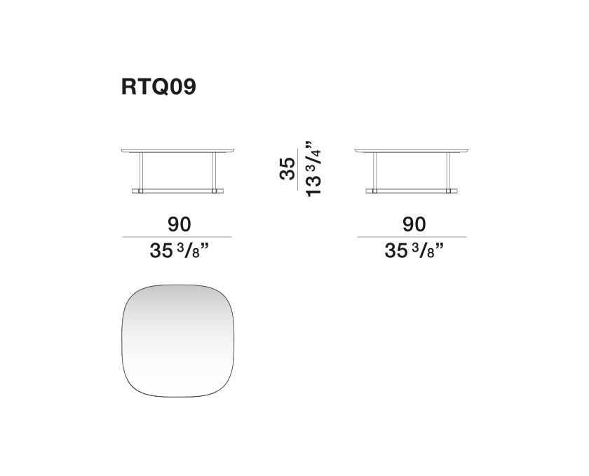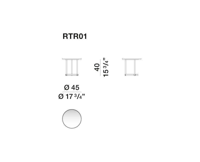 A common and distinctive element of the Regent series is the ring-shaped base. With its slender, minimalist profile, it is made up of two burnished painted aluminium frames: one supporting the top and one at the base, which incorporates, with a refined slotted movement, the two vertical support rods. The base is the result of a profound and careful attention to detail, to the mechanisms for joining the elements and to a precise study of proportions.