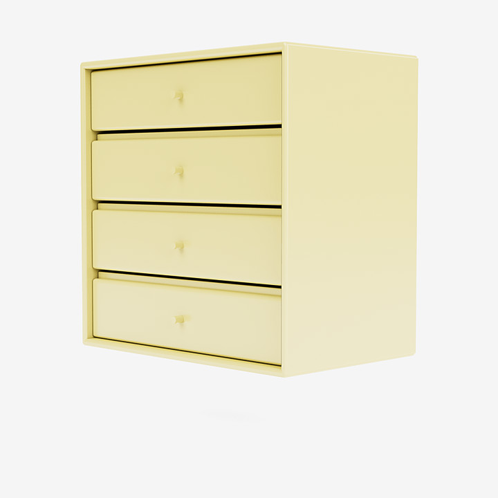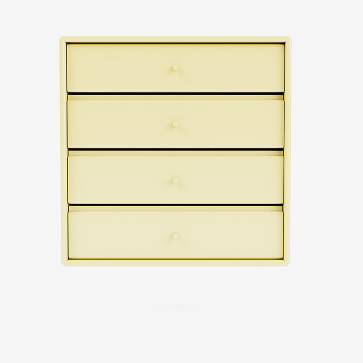 4241 是一款方形抽屜模塊,帶有四個寬敞的抽屜。提供功能性和美觀的設計以及實用的存儲空間。發揮創意并按照您的意愿使用此模塊。該抽屜模塊幾乎適用于任何房間。掛在墻上、腿上、腳輪上或底座上。這是你的選擇。該抽屜模塊有蒙大拿州全部 40 種環保漆色可供選擇。我們廣泛的調色板為您提供了幾乎無限的可能性來創造您自己獨特且有影響力的風格表達。蒙大拿州讓您輕松為您的家增添個性。