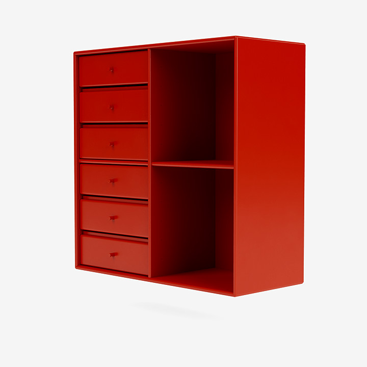 1623 架子有六個(gè)抽屜和兩個(gè)大型開放式隔間。該模塊提供了封閉式存儲空間和開放式隔間的實(shí)用且迷人的組合。開放空間非常適合展示您最喜歡的書籍、最美麗的花瓶或漂亮的碗。抽屜給人一種觸覺上的享受,因?yàn)樗鼈兛梢暂p松滑開,露出寬敞的內(nèi)部空間。該架子有 Montana 專門開發(fā)的 40 種環(huán)保漆色可供選擇。這一標(biāo)志性設(shè)計(jì)為家中幾乎所有房間增添了實(shí)用性和多功能性。該擱板可單獨(dú)使用,也可與 Montana 擱架系統(tǒng)的其他模塊結(jié)合使用。1623 擱板深度有 30、38 和 46.8 厘米可供選擇,并配有涂漆手柄。