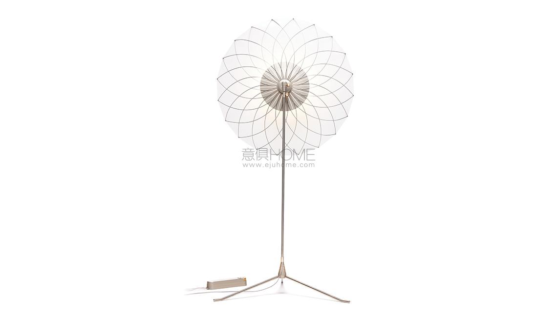 “What distinguishes a lamp from a light source?” is the question that initially triggered Rick Tegelaar to imagine and create the Filigree Floorlamp. Thanks to an elegant and dainty network of fine wires, that reminds us of delicate filigree jewelry, the translucent screen protecting the powerful LED light at the heart of the lamp is held under tension, distributing a soft light glow evenly across the room. When pointed towards a wall or ceiling, with the ornamental filigree flower structure facing us, the lamp projects a playful network of shadows to mesmerize and entertain.