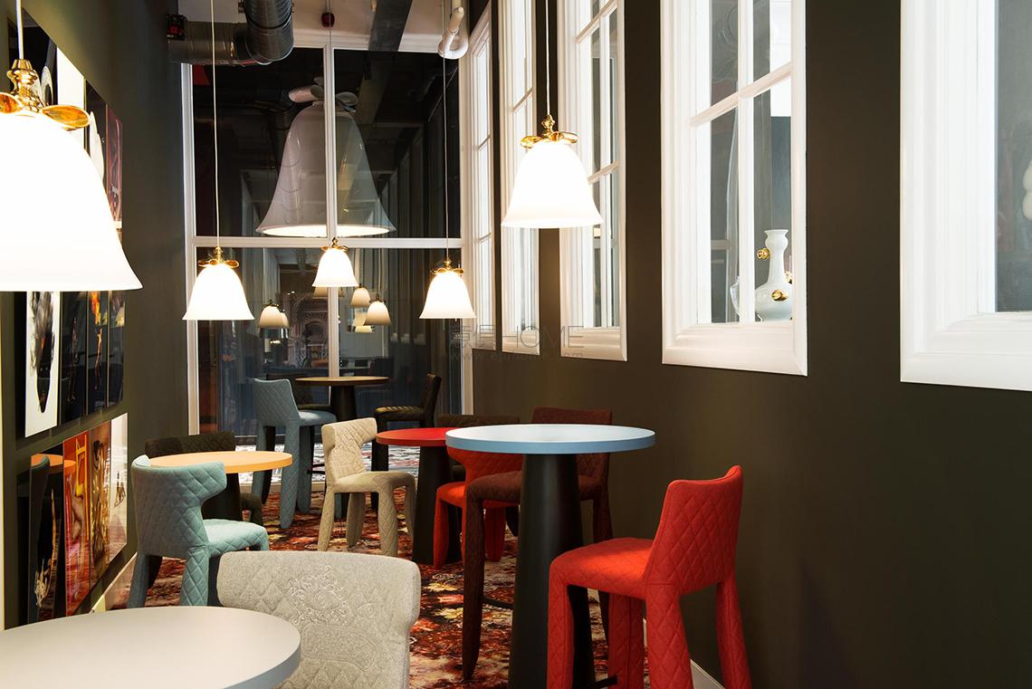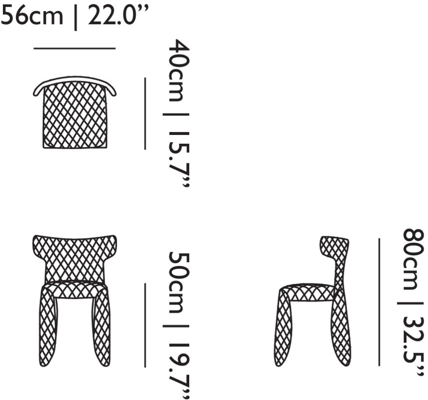 A soft, puffy and stylish chair as symbol of the eternal battle between opposite forces that take place in life and can be easily recognized inside ourselves, if we have the courage to open our eyes. Scary? Not at all! You forget all about the monster once you sit down and enjoy the chair’s comfort and softness. The signature version, the fearless leader of our Monster family, comes upholstered in Moooi Original Black Synthetic Leather with an embroidered face.