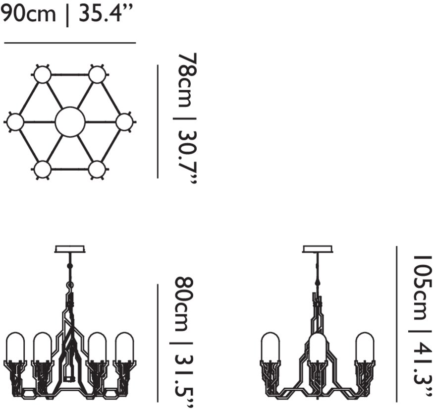 The philosophy behind the Plant Chandelier, designed by Kranen/Gille, is the imitation of nature’s structures while indulging in the poetry of their beauty. Inspired by the linear patterns of Karl Blossfeldt’s plant photography, and unrestricted by cables or wires, the Plant Chandelier is free to elegantly bloom towards the ceiling. Its silhouette follows the anatomy of sun-kissed tree branches, with a golden glow, which converges into frosted domes of light.