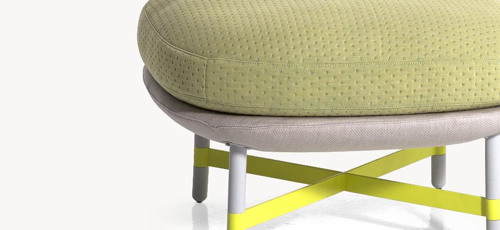 Nella seconda fase del progetto è nata l’idea di usare l’antico impero Ottomano come punto di partenza immaginario. Il poggiapiedi viene chiamato anche ottomano. La storia ottomana fornisce splendidi esempi di tessuti decorativi per interni abbinati a sedute basse, volte a incoraggiare l’interazione sociale tra le persone. Le immagini evocate sono quelle del bere il the, fumare la pipa ad acqua o la gioia di un pasto condiviso. Inoltre, esistono svariati esempi di design di tessuto in colori vivaci con schemi grafici chiari, utilizzati in interni aperti e spaziosi.