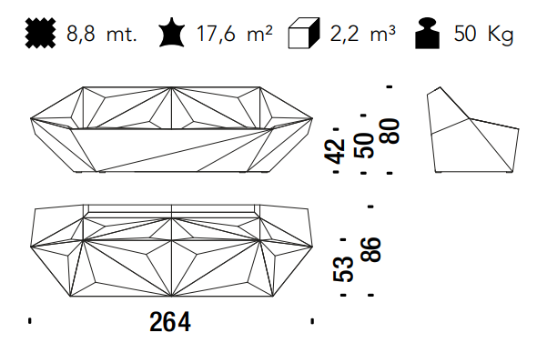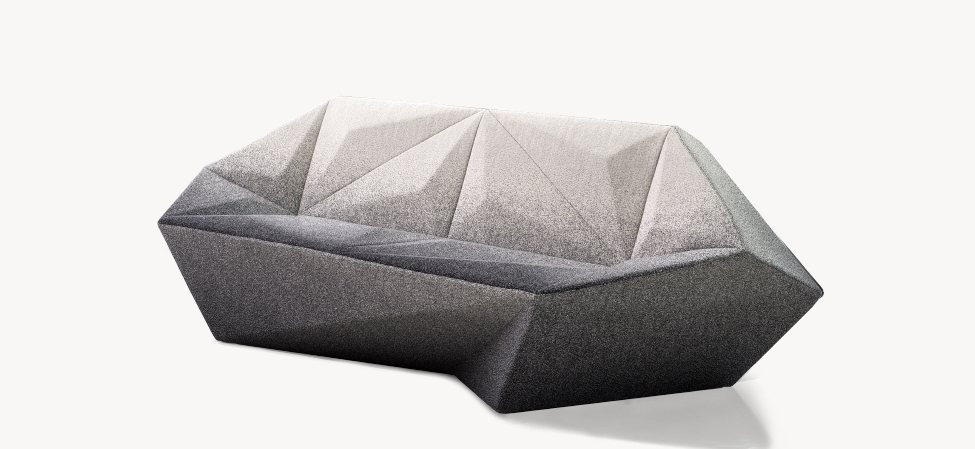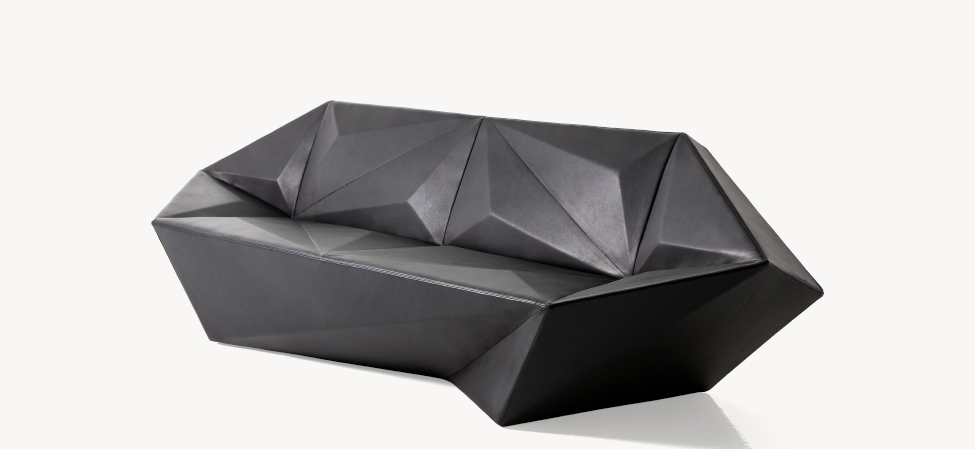 Libeskind si è profondamente ispirato alle forme geologiche naturali: cristalli, gemme, formazioni naturali di roccia. Per la collezione Moroso, il design riprende le sfaccettature asimmetriche delle gemme e ha una duplice valenza: creare una scultura per la casa o l’ufficio e ricollegarsi all’opera di Libeskind.