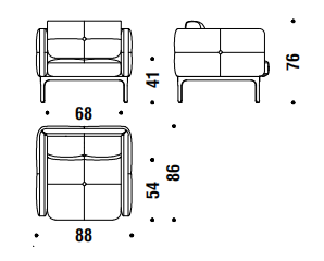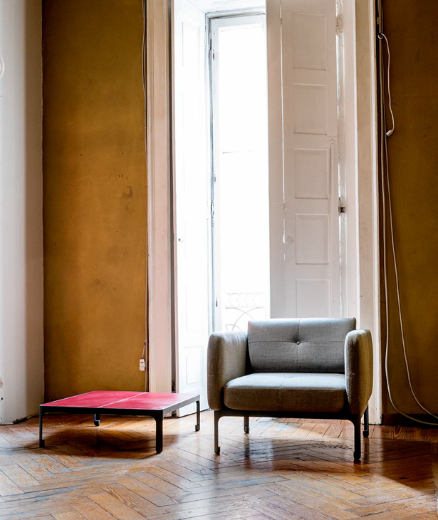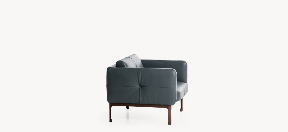 Poliuretano espanso ignifugo a densità differenziate e fibra poliestere con struttura interna in legno. Base in lamiera di acciaio tagliata al laser, sagomata e verniciata a polveri. La collezione Modernista non è sfoderabile.