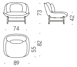 Scocca in poliuretano schiumato a freddo ignifugo su struttura interna in acciaio. Cuscini con inserto in poliuretano espanso ignifugo, fibra poliestere e chip di memory foam. Basamento in acciaio verniciato a polveri. La collezione Ottoman non è sfoderabile.