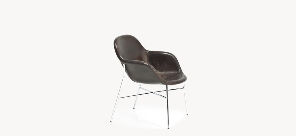 Seduta in pelle supportata da rete autoportante su struttura in metallo. Base in acciaio verniciato a polveri o cromato. Sottopiedi in polipropilene. Sottopiedi in polipropilene. La collezione Tia Maria non è sfoderabile.