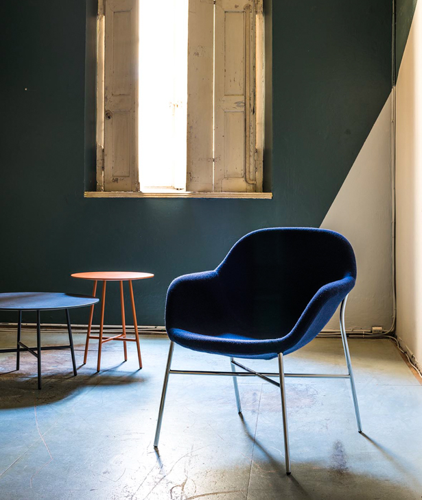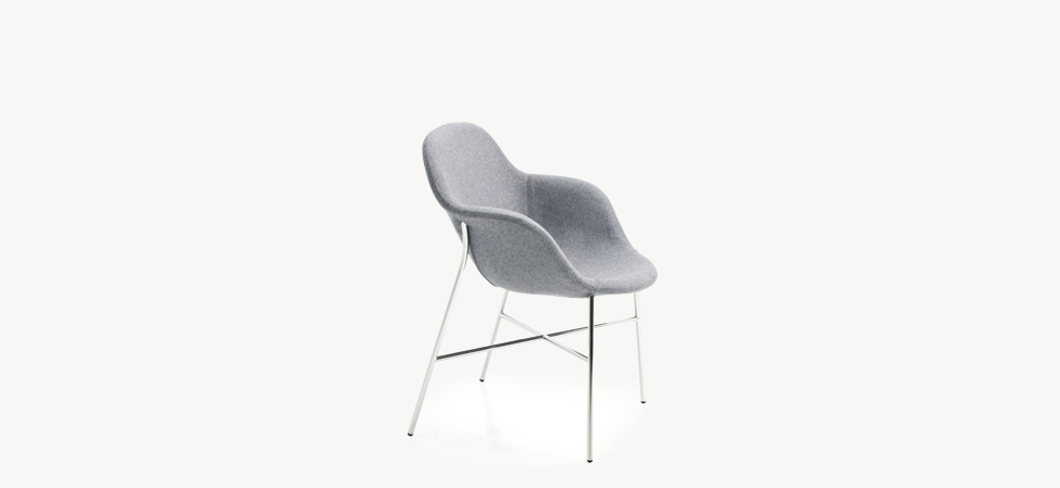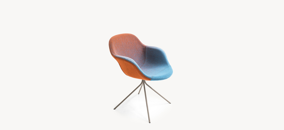 La ricerca parte dal telaio, dallo studio della qualità degli appoggi. è l’ergonomia a determinare la posizione di seduta, i due approcci complementari di concepire la comodità. Sostenere e accogliere. Nella sedia, poltroncina e poltrona la scocca imbottita poggia sulla base; nella poltrona e nella chaise longue il rivestimento è ancorato direttamente al telaio, una sacca che accoglie e seduce l’ospite. Il nome, citazione di un liquore caraibico a base di caffè e rhum, svela la doppia identità, l’allusione al gioco dei contrari. Postura formale e informale, simmetria e asimmetria dei braccioli, linearità e sinuosità del telaio. Ogni funzione è assolta: attesa, riposo, relax.