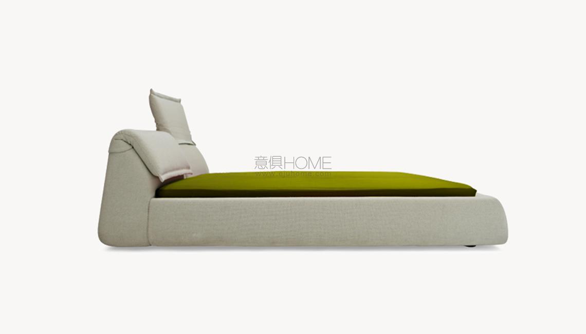 Testiera reclinabile e sponde del letto imbottite. Possono contenere solo materassi con misure standard europee. La collezione Highlands è sfoderabile.