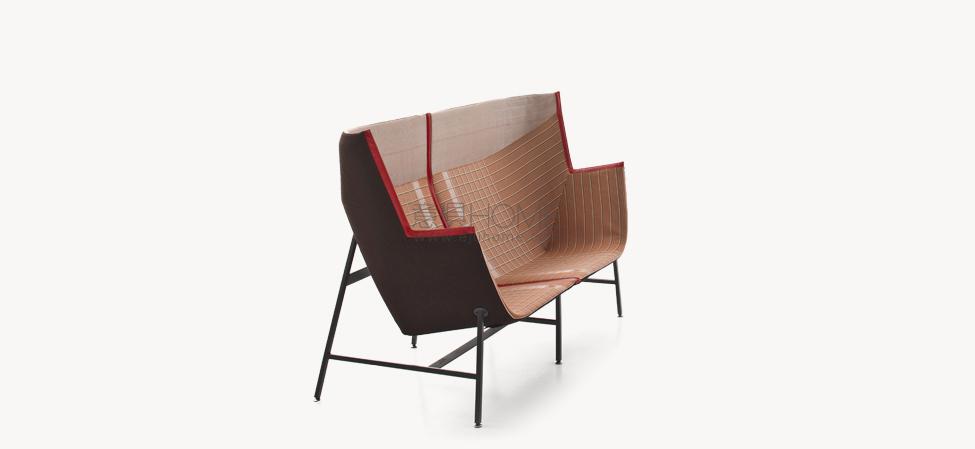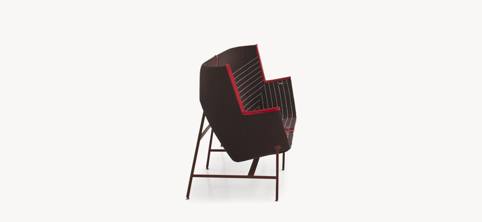 Una scultura funzionale, una seduta da lettura avvolgente e confortevole, resistente ma nel contempo leggera, sospesa come a sconfiggere la gravità. Paper Planes nasce dalla progettazione di un tessuto ispirato alla carta millimetrata: una forma derivata dal piegare e appuntire la carta esplorando forme e strutture, producendo angoli, linee e poligoni. L’apparente semplicità richiede però una magistrale abilità sartoriale. Durante la fase di imbastitura le righe del decoro, data la particolarità geometrica della seduta, impongono una perfetta convergenza, non lasciando al maestro artigiano il minimo margine d’errore.