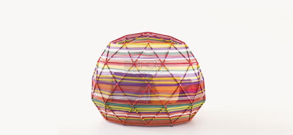 La struttura in tubolare di acciaio del progetto Antibodi diventa la falsariga sulla quale la designer, attraverso un make-up creativo, traveste il telaio, lo trasforma, facendo assumere alle sedute personalità diverse a seconda del materiale utilizzato. Il giro di filo è simile a un colpo di matita, marca una superficie che è contemporaneamente grafica e strutturale, diventa gesto costruttivo e forma d’identità: giocoso con la plastica dei cordoncini lavorata a due o tre colori, raffinato se monocromatico, elegante con il cuoio.