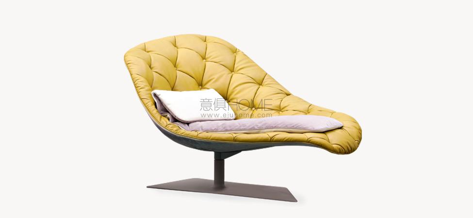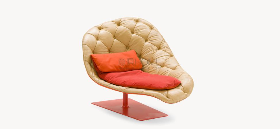 Confrontarsi con il “capitonné” interpretandolo in modo originale, rivoluzionandone il concetto. Patricia Urquiola disegna una famiglia di prodotti la cui forma sembra liquida, come se andasse a sciogliersi sulla struttura creando delle linee morbide, avvolgenti, quasi casuali, dove il tessuto o la pelle vengono fissati alla scocca con dei bottoni automatici. L’oggetto sembra indossare sulle spalle uno scialle, sulla seduta vengono sovrapposte una serie di cuscini di vario tipo: una ricerca del rivestimento quasi ossessiva, ricca, sovrapposizione di pelli e materiali diversi, colori, lavorazione del tessuto. Una sorta di patchwork di lusso che indossato, dona all’oggetto uno spirito nomade e globale.