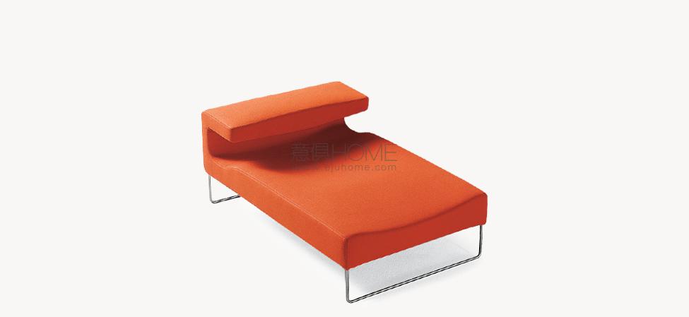 Una poltrona, una chaise longue e un elemento angolare danno vita ad un sistema modulare estremamente versatile. Sedute libere, indipendenti, ma al tempo stesso concepite come un corpo unico morfologicamente allineato. I singoli elementi, combinati tra loro, permettono configurazioni aperte, originali anche per la possibilità di essere vissute completamente. L’area di seduta, frontalmente, è ampia, comoda, invita al riposo; dietro, lo schienale si presta all’appoggio temporaneo, come fosse un muretto dove fermarsi per una pausa, pronti a ripartire. Spazi domestici, luoghi pubblici e collettivi: l’utilizzo è trasversale, le composizioni illimitate.