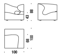 Elementi dai volumi plastici per un sistema di sedute scultoree ma di grande comfort. Gli elementi sono in espanso schiumato a freddo ignifugo con struttura interna in acciaio. Piedi in polipropilene nero avvitati alla struttura. La collezione viene prodotta, per la particolarità delle forme, solo in panno di lana Divina by Kvadrat. La collezione Misfits non è sfoderabile.