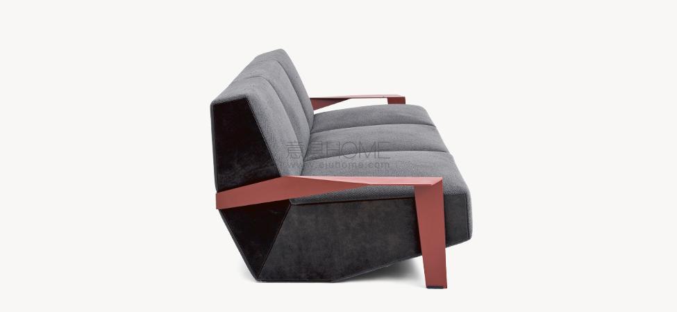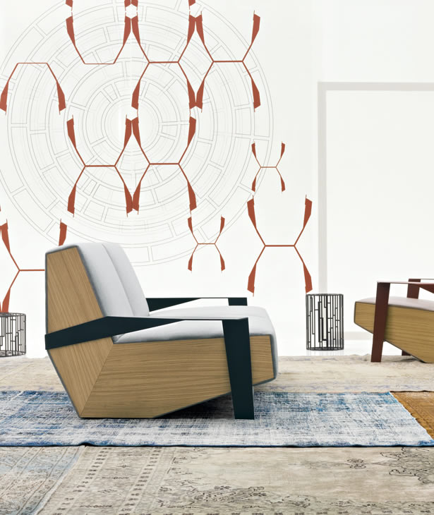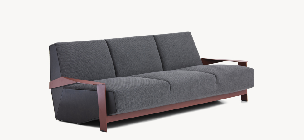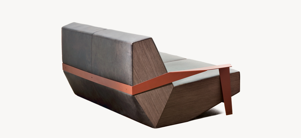Ricoprire il piacere di una formalità elegante e sofisticata attraverso uno stile architettonico ispirato al modernismo californiano degli anni ’50. Un sistema costituito da tre divani, due poltrone e una poltroncina, forme prismatiche dalle geometrie continue giocate tra volumi pieni e vuoti. I materiali rimandano direttamente agli elementi della natura e al loro mutare in contrasto con il ritmo frenetico della vita contemporanea. Una sintesi plastica che fa riemergere oggi, in modo indiretto, la visione utopica di quegli anni. Il nome, Silver lake, è quello del quartiere di Los Angeles Downtown, noto per la presenza di molte case firmate dai grandi architetti modernisti.