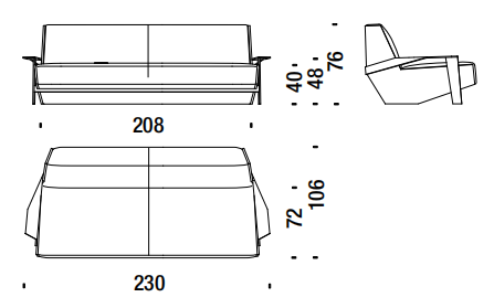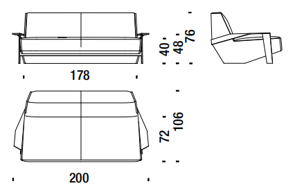Poliuretano espanso ignifugo indeformabile a densità differenziate e fibra poliestere con struttura interna in legno. Braccioli e piedi in acciaio verniciato a polveri. I cuscini opzionali sui braccioli dei divani sono in fibra poliestere. La collezione Silver Lake non è sfoderabile.