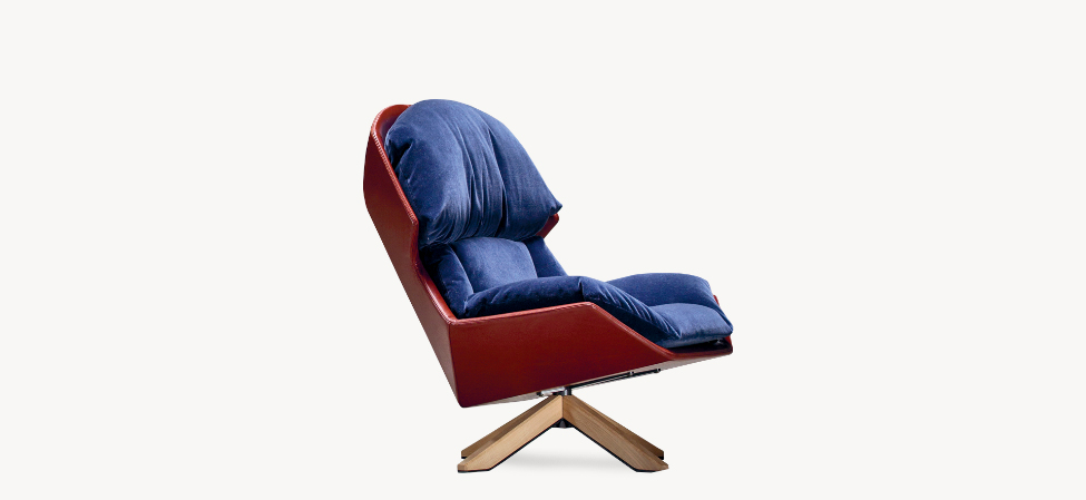 Una seduta e il suo doppio: da un lato contiene e protegge, dall’altro distende e accoglie. Una vistosa ambivalenza che separa artificiosamente forma e contenuto, immagine e concetto, che non a caso suggerisce con il nome – hood, cappuccio – una doppia funzione. Il cappuccio è un simbolo antico e contemporaneamente urbano; protegge e incornicia il viso ma può nascondere, negare il dialogo e il confronto. L’impatto è forte, tutto giocato sul filo del contrasto: le tre dimensioni sembrano recitare la geometria bidimensionale del disegno, la sovrapposizione cromatica non divide ma complementa, la tensione non viene sopita ma stabilizzata. Clarissa è poltrona relax dinamica, pronta allo scatto ma disposta al riposo, alla sospensione temporanea delle attività. Una combinazione di agonismo e collaborazione, di provocazione ed estetica.