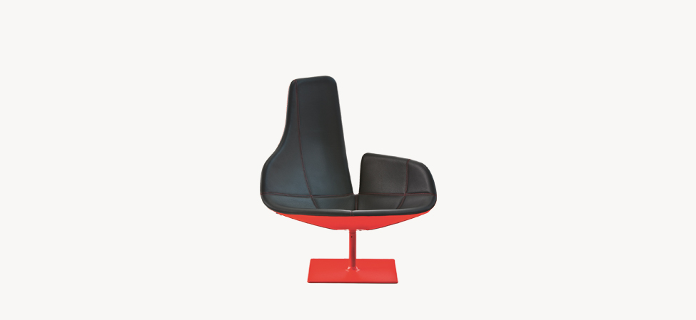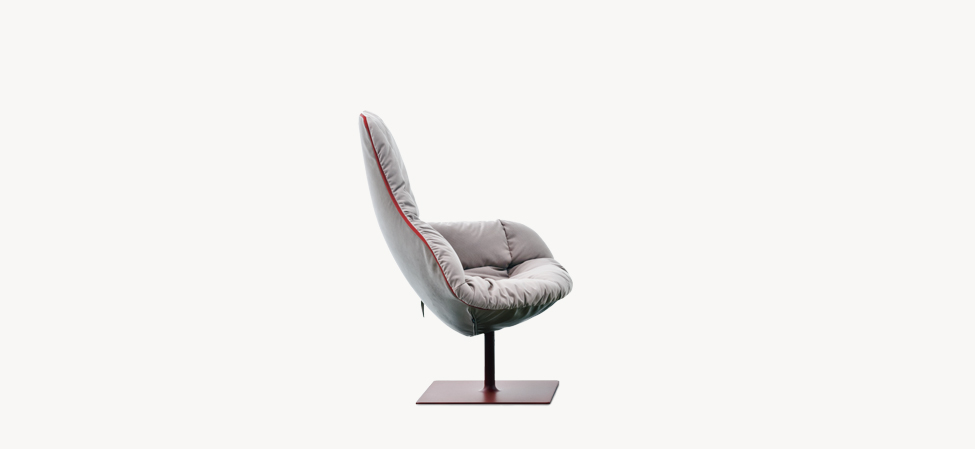 Poltrona girevole in espanso schiumato a freddo ignifugo con struttura interna in acciaio. Base quadrata in acciaio verniciato a polveri. Disponibile con rivestimento fisso (cod. 03K) o predisposta (cod. 03G) per l’aggiunta di trapunta in cotton gel (cod. 340).