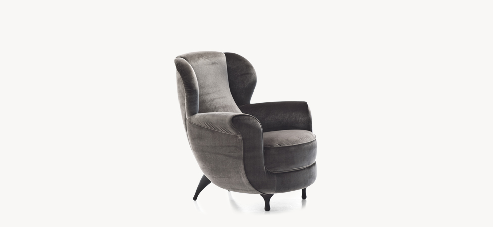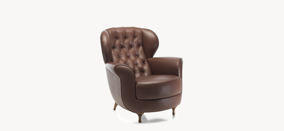 Elementi in poliuretano espanso indeformabile a densità differenziate e fibra poliestere con struttura interna in legno. Piedi in faggio verniciato avvitati alla struttura, ad eccezione dei piedi posteriori che sono fissati alla struttura. I cuscini della seduta, non reversibili, sono in poliuretano espanso a densità differenziate e fibra poliestere. I cuscini dello schienale sono in piuma d’oca. La collezione Big Mama è sfoderabile, ad eccezione delle poltrone Papy e delle versioni in pelle.