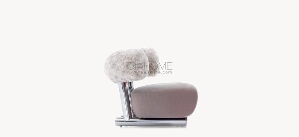 Anteporre il grosso al fino, prediligendo una scelta in controtendenza rispetto alla più comune ricerca sulla forma sottile. E, nonostante questo, mantenersi leggeri, lievi. Il progetto si articola così attorno all’aspetto più rassicurante dell’oversize: la semplicità. La struttura, essenziale e robusta, è costruita con un tubo in alluminio verniciato a polvere dal diametro di 80 mm. Appoggiato sopra, un cuscino di seduta dalla corporatura rotondeggiante, velata suggestione all’idea del modulo gonfiabile. Lo schienale, come una parentesi bold, promette comodità. L’effetto, oltre alla naturale simpatia, è quello di una piacevole rotondità, disinvolta e leggera.
