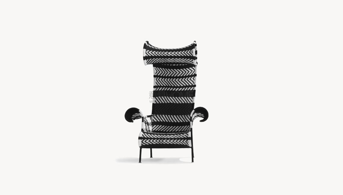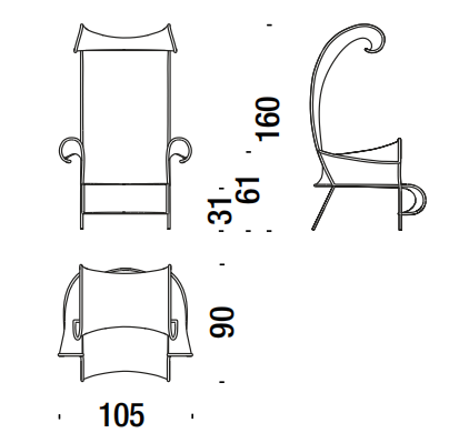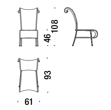 Struttura in acciaio verniciato e fili colorati in polietilene intrecciati a mano. Sottopiedi in PVC.