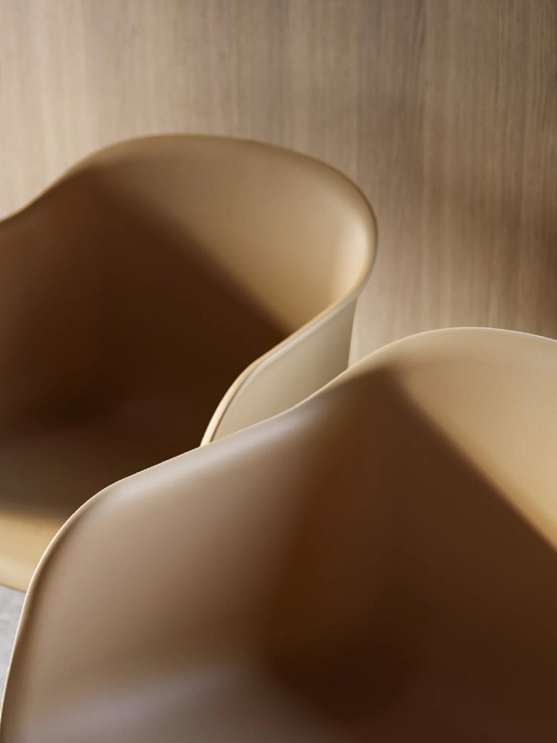 The Fiber Armchair brings a new perspective to the iconic shell chair through its innovative composite of plastic and wood fibers. Non-upholstered variants of the Fiber Armchair are made from a combination of recycled plastic (min. 80% is recycled) and FSC? (FSC-C028824) certified wood fibers. The wood fibers blend into the surface for a matte finish and add a soft, inviting touch. The Fiber Armchair is designed with friendly, embracing curves that provide extensive comfort to its user while taking up little space in the room. Please note that variants with recycled plastic and FSC?-certified wood will be available in North America in spring 2022.