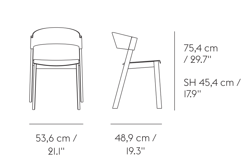 Referencing the values of forward-thinking craftsmanship and Scandinavian materiality, the Cover Side Chair is an elegant perspective on the timeless wooden chair. With its curved backrest that folds elegantly around its back legs and ties the design together, the Cover Side Chair explores the possibilities of veneer, paired with a deep comfort, modern expression and sturdy base in solid wood. The design is stackable and features a water-based lacquer.
