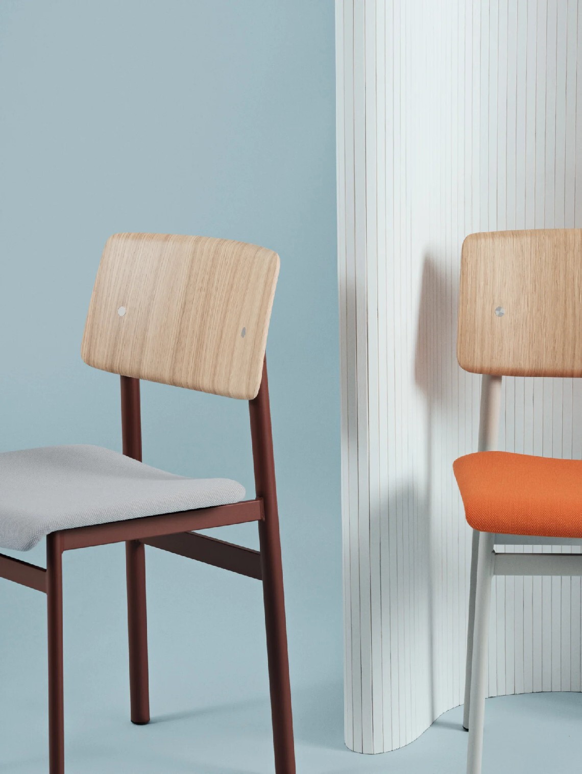 Loft Chair exemplifies honest, simple design thanks to an expression inspired by industrial design. The design features contrasting materials with its frame in powder coated steel that is offset by the soft plywood on seat and back, molded to embrace the user's body.