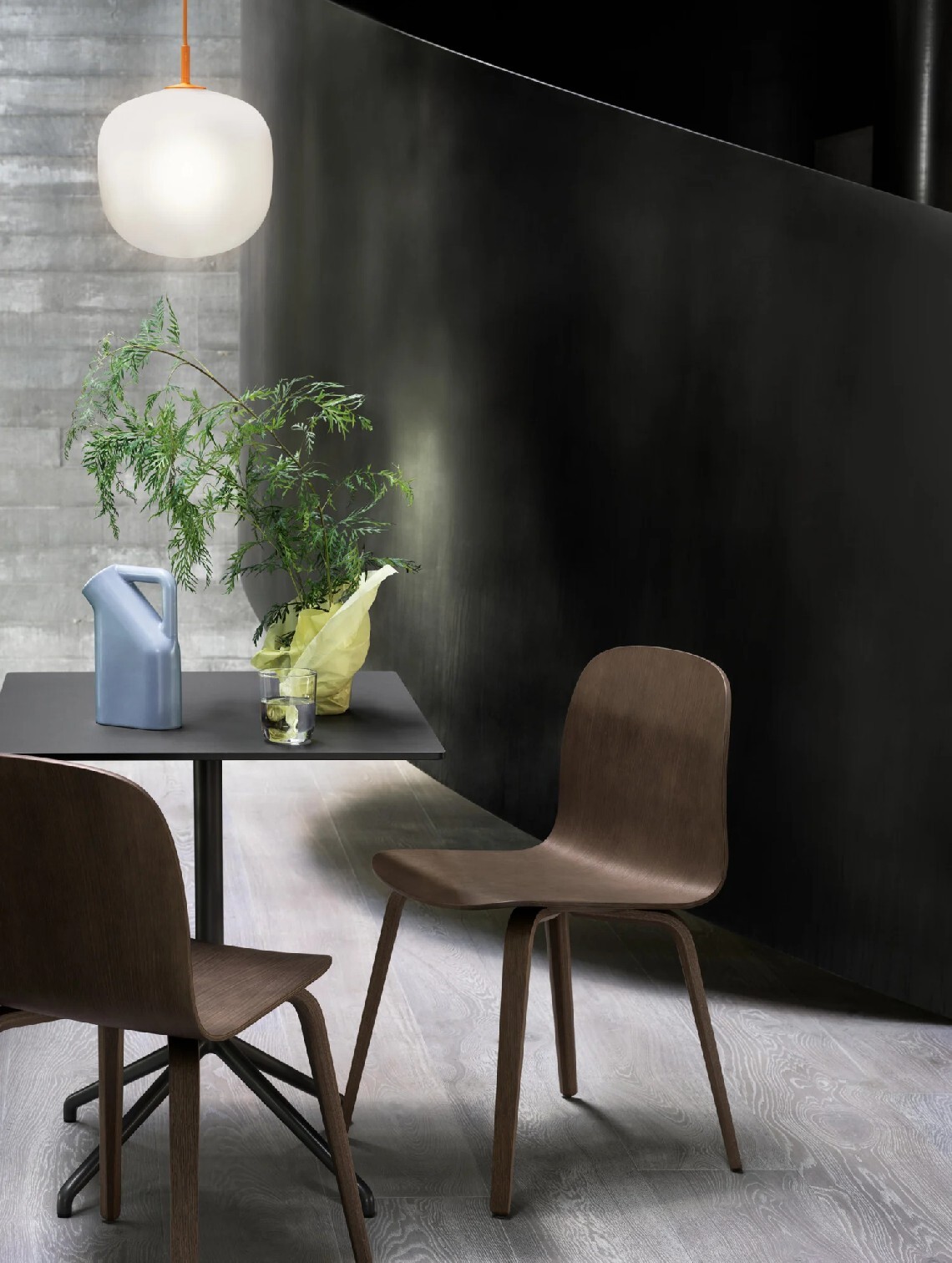 The slim tube legs and form-pressed veneer wood body of the Visu Chair create quiet lines while making it easily stackable, fit for conferences, office spaces, restaurants or home dining areas.