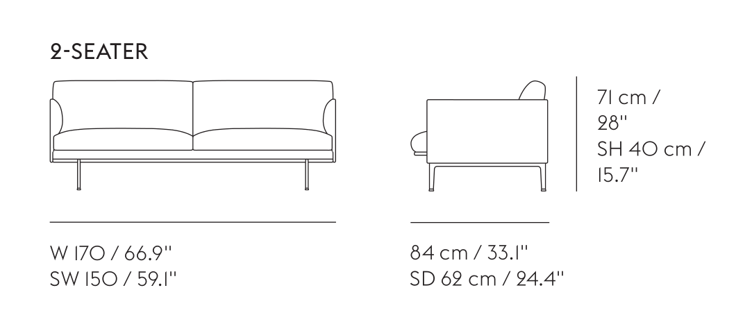 The Outline Sofa adds new perspectives to the classic Scandinavian design sofas of the 1960's, marrying the ideals of simplicity and function into one. With the design taking its name from its strong outline of a sofa, the Outline Series is clean and elegant on the outside with a deep seat and soft cushioning on its inside. The Outline Series has an expression that is at once elegant yet timeless, elevated by its lines referencing architectural shapes alongside its curved armrests, giving the design a distinct appearance across various sizes and variants. The Outline Series also includes Studio versions of the Sofa and Chair, being compact versions with slimmed-down proportions for smaller spaces within the home, hotel rooms, work settings and more. The Outline Studio Sofa and Chair have a smaller depth of 76 cm / 29.9”.