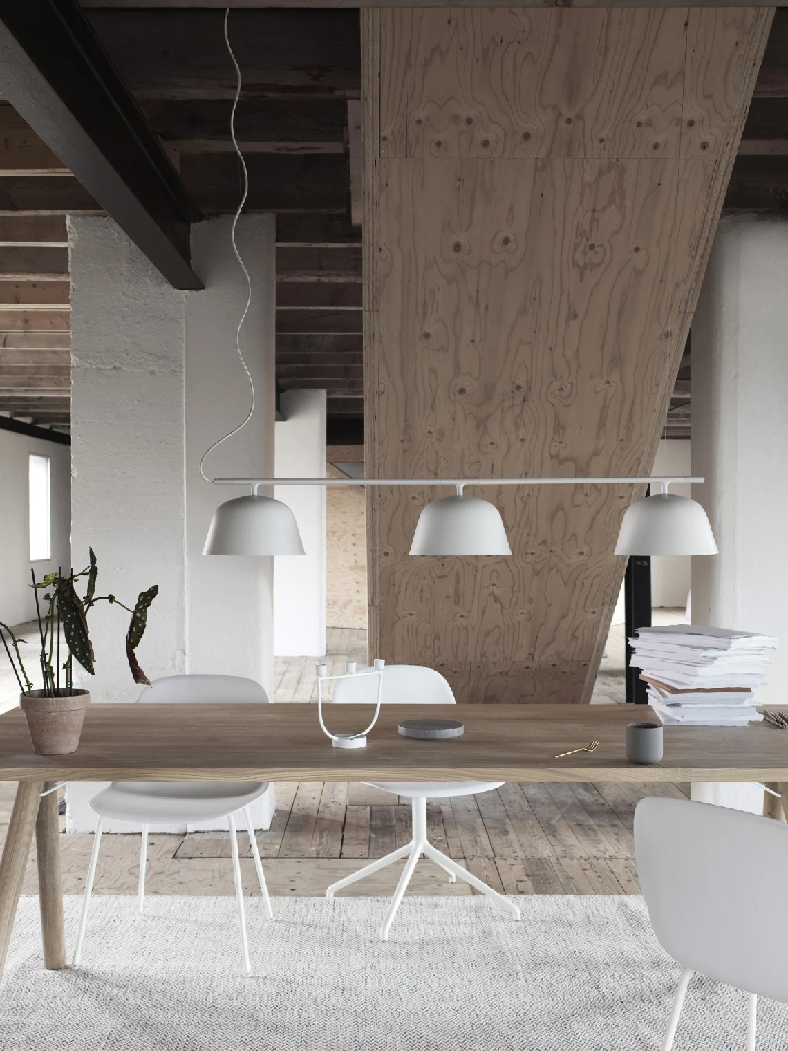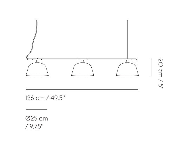 The Ambit Rail Lamp is characterized by its simple lines and elegant shapes, bringing a refined light to any space. With its shades being made of handspun aluminum, the Ambit Rail Lamp features white interiors that provide a contrast to its outside shade while enhancing the light emitted into the room of any home, office or hospitality space.