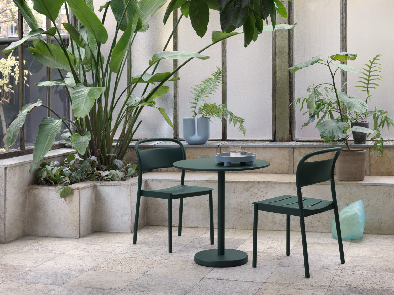 The Linear Café Table is characterized by its clean lines and elegant shapes, allowing for it to complement any outdoor setting. Use the design on its own or in company with the Linear Steel Armchair or Side Chair.
