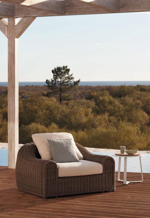 The River seating collection owes its name and inspiration to the meandering flow of a watercourse. Through its elegant curves and shapes, the sofas and sunbeds mimic natural surroundings, fostering a harmonious, relaxing space for connection. Become one with nature and experience its calming effects in this low-to-the-ground design with extra deep seating.