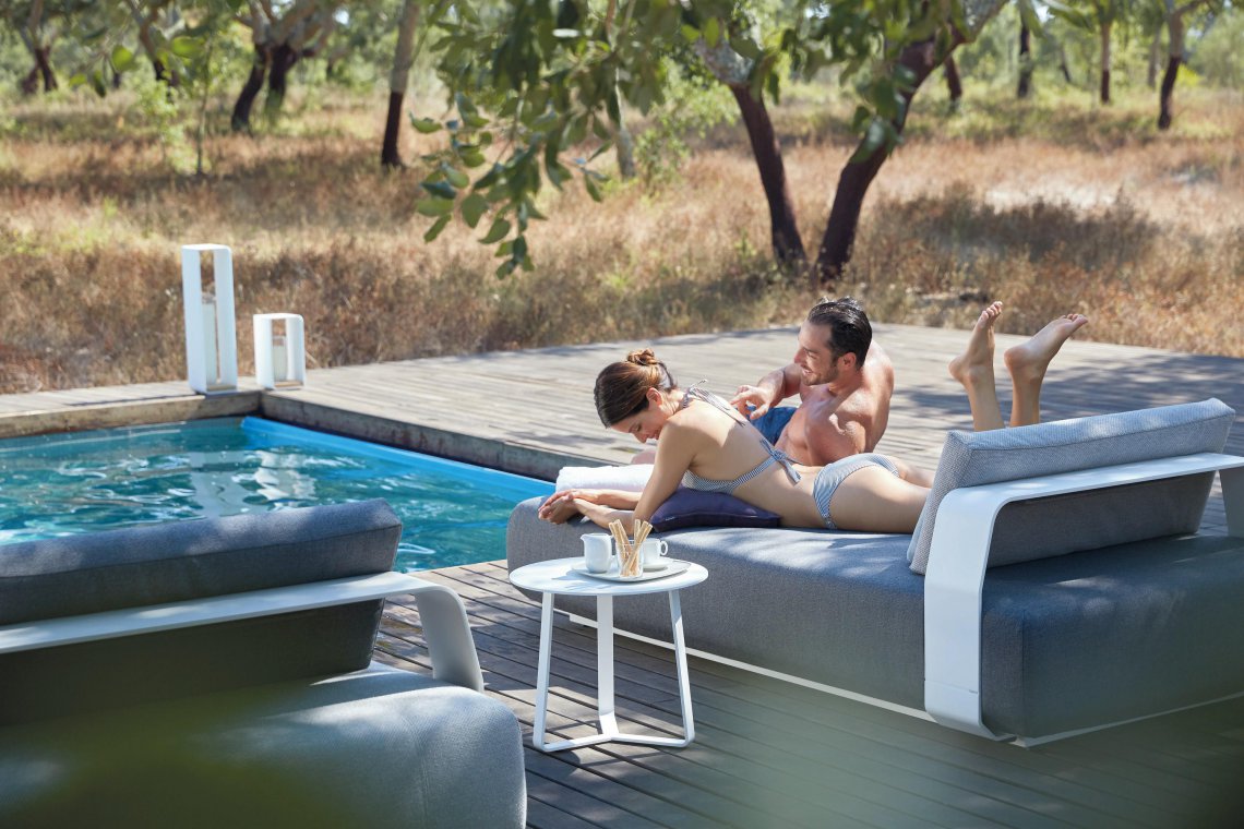 Kumo is a light and playful contemporary seating island with pouf. Japanese for cloud, Kumo invites you to create your personalised outdoor cocoon. It comes in different shapes and sizes. The movable armrests and back supports are easily adjusted to create either a comfortable sofa or stylish lounger, a luxurious lounge chair or a relaxing footrest.