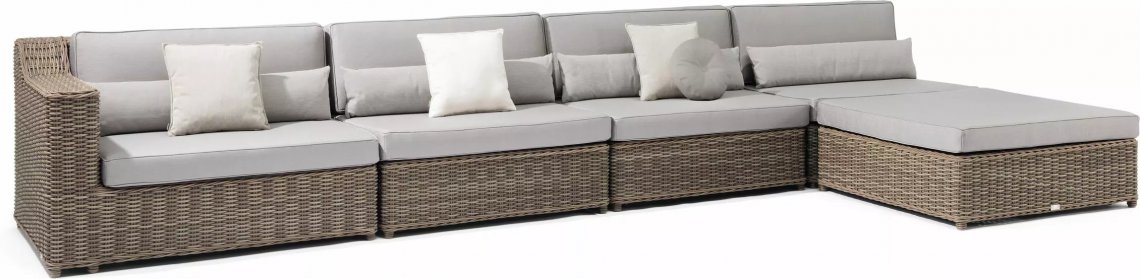 The San Diego collection of tables, chairs, sofas and accessories combines strong water-repellent fabrics and synthetic aged rattan cane work. Designed with a stark, minimalistic eye to detail, each piece also includes the softer, organic appeal of wicker. Natural materials and tones add to the collection’s ageless appeal.