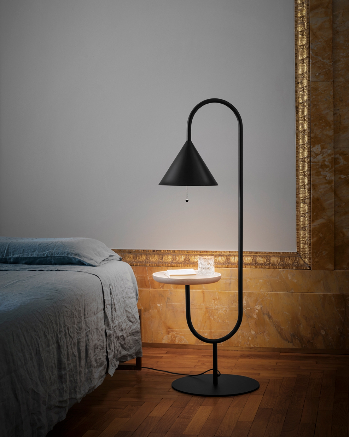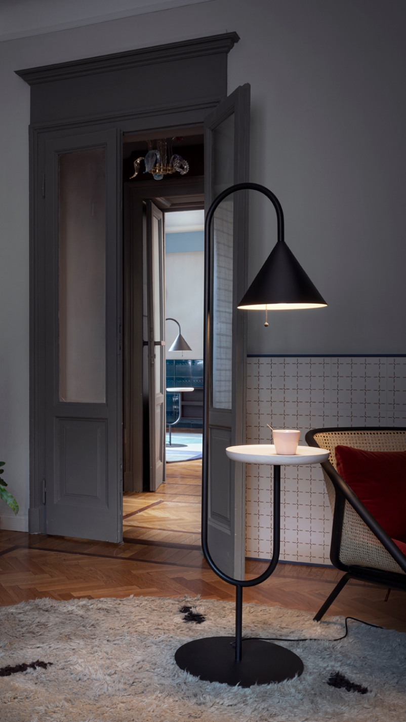 Ideale per risolvere situazioni d’ingresso, Benvenuto invita ad appoggiare le chiavi e appendere il cappotto, facendo dello specchio un complemento multifunzionale.