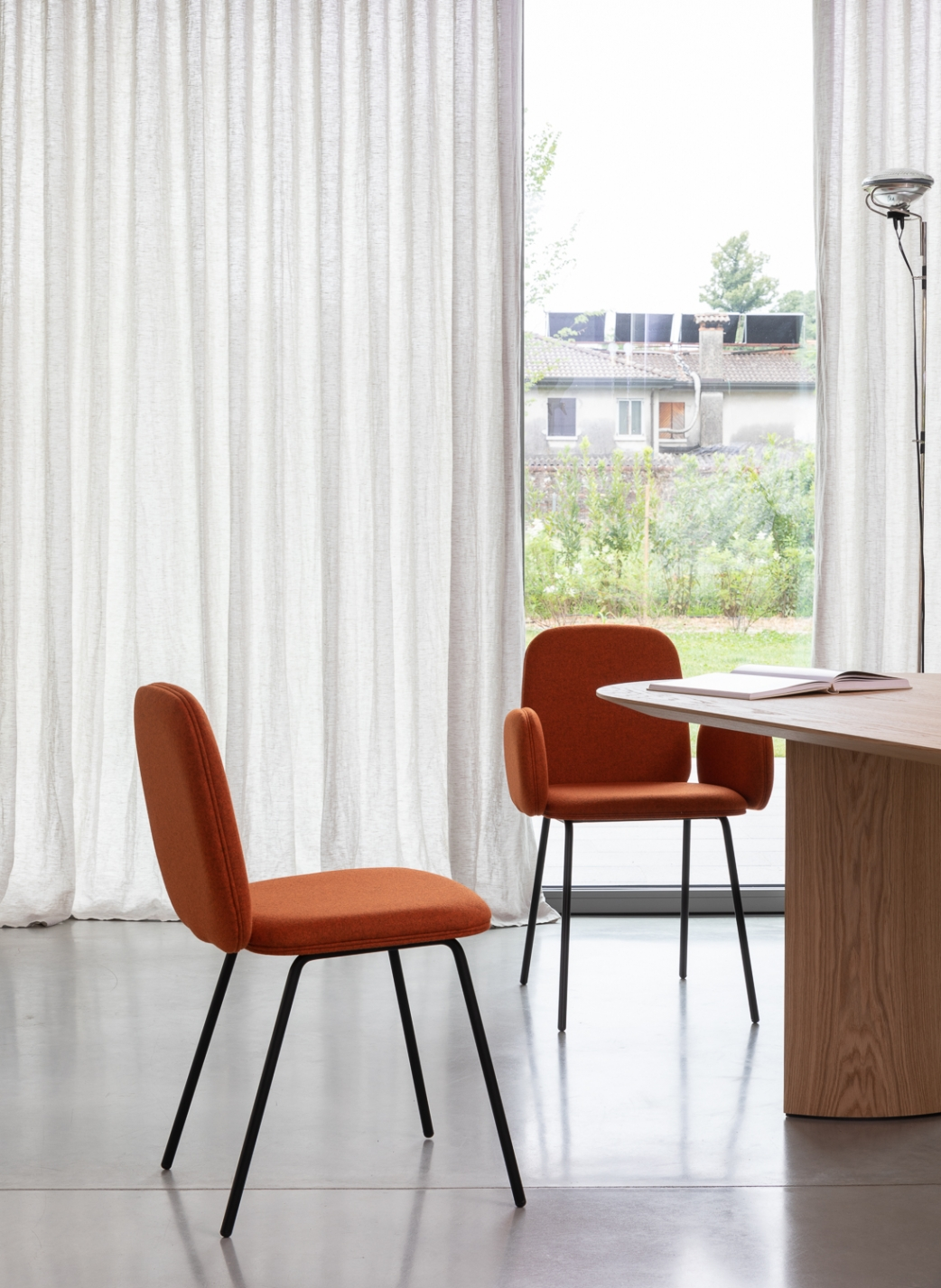 Bice è una sedia snella e a tratti insolita. Nel suo design essenziale spicca uno schienale a sventola, eccesso capace di equilibrare e caratterizzare la sua struttura.